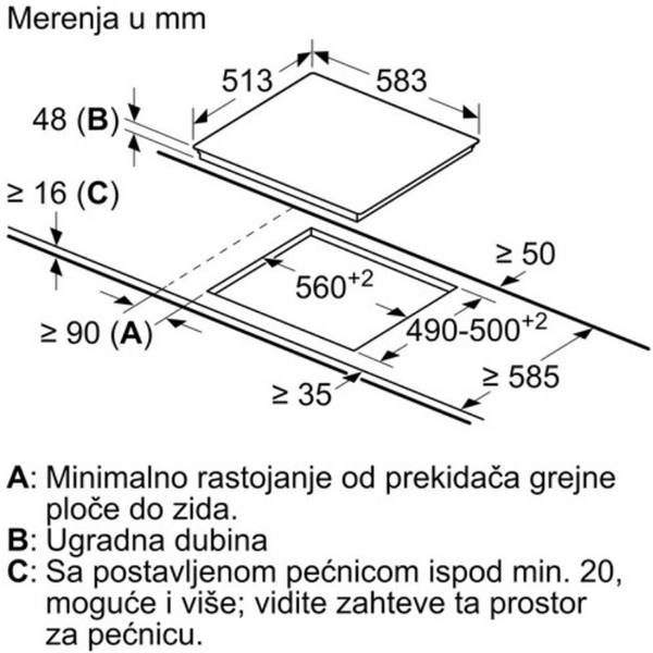 Dimenzije niše (VxŠxD): 48 x 560 x 490-500 mm