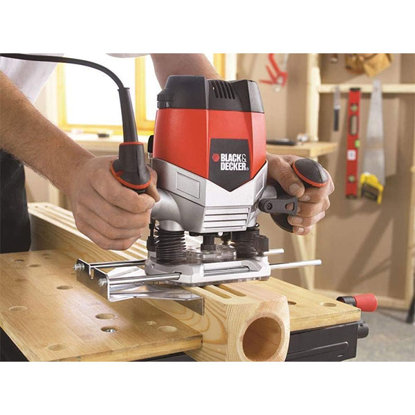 Glodalica 1200W Black+Decker KW900E je električna glodalica snage 1200 W, opremljena elektronskom kontrolom brzine obrtanja od 8000 do 27000/min i dubinom glodanja od 0 do 55 mm. Sa mogućnošću blokade vretena i opcijom usisavanja, ovaj alat omogućava precizno izrađivanje žlebova, obradu ivica i profilno glodanje. Snažan motor pruža dovoljno snage za rad sa većim prečnicima, dok ugrađena blokada osovine omogućava jednostavnu zamenu glodalica. Prekidač za napajanje smešten je u dršci radi bezbednog i udobnog rada, dok sigurnosni prekidač sprečava slučajno startovanje, čineći ovu glodalicu pouzdanim i praktičnim alatom za obradu drveta.