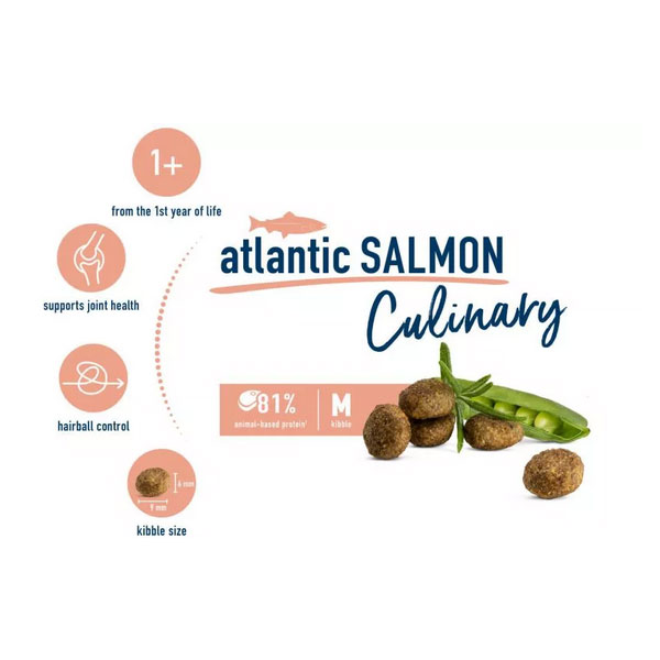 - Hrana sa atlantskim lososom iz asortimana suve hrane za odrasle sadrži važna dijetalna vlakna i pomaže u smanjenju formiranja dlaka.