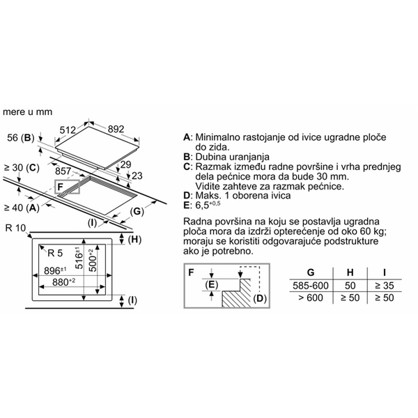 Ugradne dimenzije (VxŠxD): 56 mm x 880 mm x 500 mm