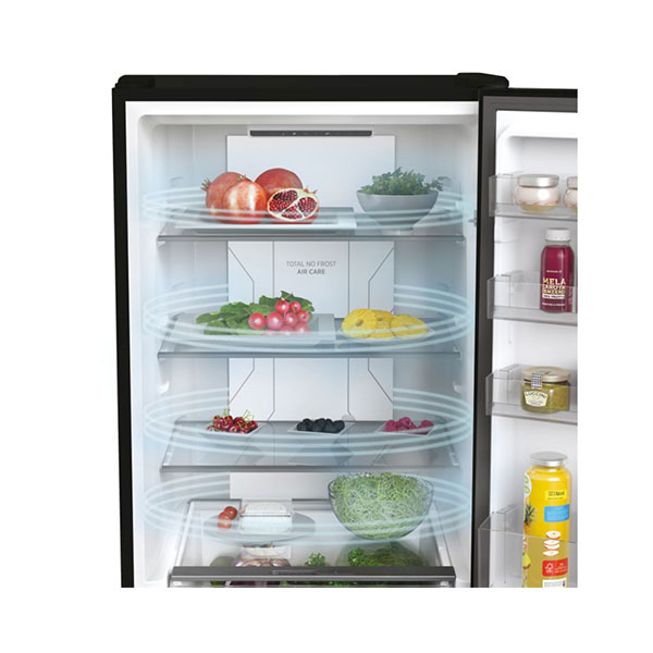 Kombinovani frižider HOCE4T618EB 341L Hoover ELE02352 spaja funkcionalnost i moderan dizajn za vaš dom. Sa ukupnom zapreminom od 341 litara (222l frižider; 119l zamrzivač) i položajem zamrzivača dole, pruža dovoljno prostora za skladištenje namirnica. Opremljen Total No Frost Air Care sistemom hlađenja, sprečava stvaranje leda i održava konstantnu temperaturu u oba dela. Digitalno podešavanje temperature i LED svetlo unutar frižidera dodatno povećavaju praktičnost korišćenja. Cool Space XL fioka za voće i povrće sa kontrolom svežine osigurava dugotrajnost i svežinu namirnica. Frižider je dizajniran s antibakterijskom gumom na vratima za dodatnu sigurnost hrane. Tehnologije Bluetooth i ugrađen Wi-Fi omogućavaju daljinsko upravljanje putem hOn aplikacije. Sa crnom bojom i integrisanim ručkama za otvaranje, ovaj frižider odlično se uklapa u moderne enterijere. Registracijom ostvarujete pravo na 5 godina garancije, što garantuje dugotrajnu pouzdanost uređaja.