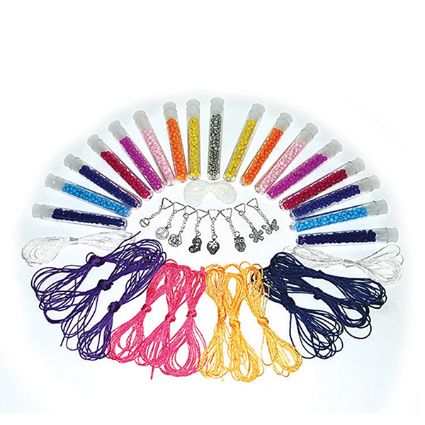 Set sadrži 4 narukvice i 4 ogrlice, 1270 perlica i 8 privezaka