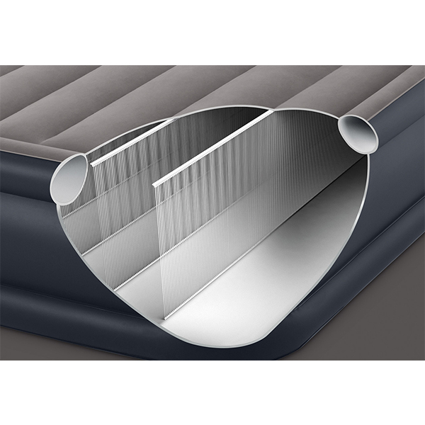Krevet na naduvavanje DuraBeam 152x203x51cm Intex 64164 je praktičan pomoćni ležaj, idealan za goste, spavanje u vikendici ili na kampovanju. Napravljen je sa inovativnom Dura-Beam tehnologijom koja obezbeđuje poboljšanu strukturu, stabilnost i izdžrljivost modela, a ujedno ga čini udobnijim. Veća visina dušeka omogućava lak ulazak i izlazak iz kreveta, a dupli dušek omogućava da se čaršav čvršće postavi na ležaj. Pogodan je za unutrašnju i spoljnu upotrebu. Dušek je opremljen unutrašnjom pumpom, koja se napaja preko klasičnog priključka za struju. Ukoliko na datom mestu ne postoji pristup utičnici, može se puniti i mehaničkom pumpom. Napajanje je postavljeno sa bočne strane dušeka.
