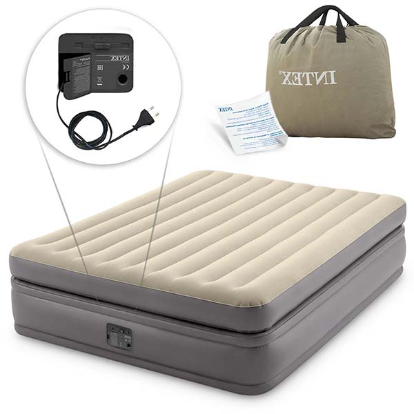 Krevet na naduvavanje DuraBeam Essential 152x203x46cm Intex 64126 je udoban pomoćni ležaj na naduvavanje, za veću fleksibilnost i mobilnost upotrebe. Krevet se može odložiti u orman ili poneti na putovanje u kutiji, a zatim se pripremiti za upotrebu za samo nekoliko minuta. Opremljen je ugrađenom pumpom, koja je lagana, mala i energetski efikasna, a dopunjava se preko utikača koji je postavljen sa bočne strane dušeka. Ukoliko ne postoji izvor struje u blizini, krevet se može puniti mehaničkom pumpom. Krevet za naduvavanje je izrađen sa inovativnom DuraBeam tehnologijom sa pregradama, pa je oblik kreveta stabilniji, a sam krevet udobniji i dugotrajniji. Površina kreveta je od materijala prijatnog na dodir, koji je dovoljno hrapav da spreči padanje prekrivača i čaršava na pod. Dimenzije ga čine pogodnim za komotan san 2 osobe.