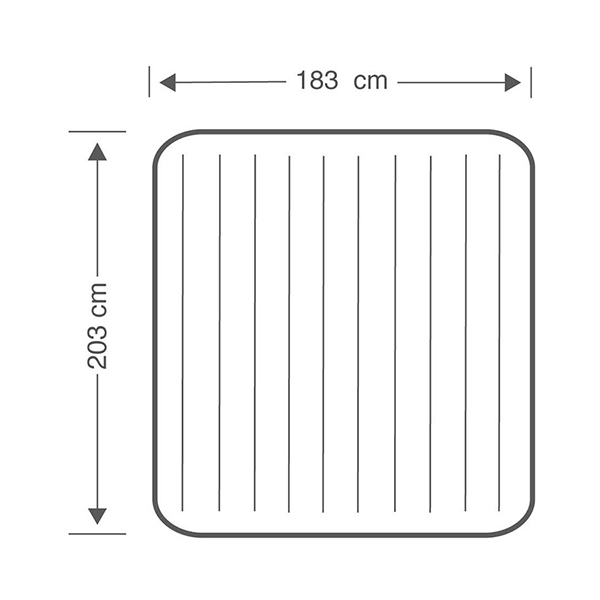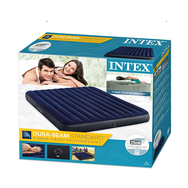 Krevet na naduvavanje DuraBeam Standard 183x203x25cm Intex 64755 je priručni krevet u obliku dušeka dimenzija 183x203x25cm. Dušek je dovoljno komotan za dve odrasle osobe, a maksimalna nosivost modela je do 272kg. Napravljen je od vinila, sa inovativnom Dura-Beam tehnologijom sa potpornim sistemom koji daje krevetu stabilan oblik, izdržljivost i dugotrajnost. Dušek je udoban, sa površinom prekrivenom mekanim materijalom za veću udobnost tokom momenata odmora. Dušek se brzo može pripremiti za upotrebu pomoću ručne ili nožne pumpe. Jednako jednostavno se pražni radi odlaganja u orman ili gepek automobila. Idealan je izbor za vikendice, kampovanja ili u stanu za goste.