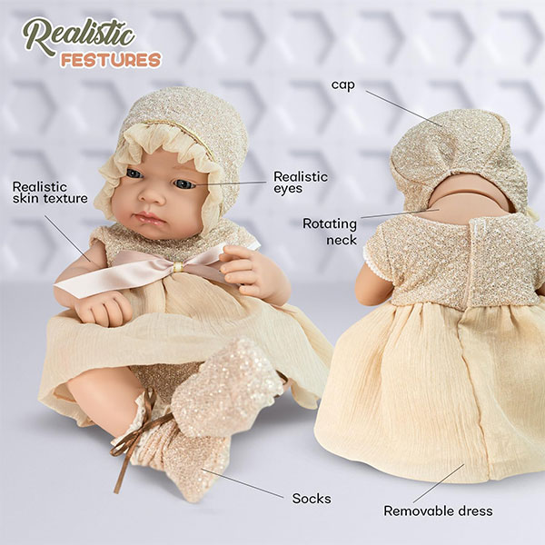 Karakteristike - Lutka beba u svečanoj haljini 40cm 602098