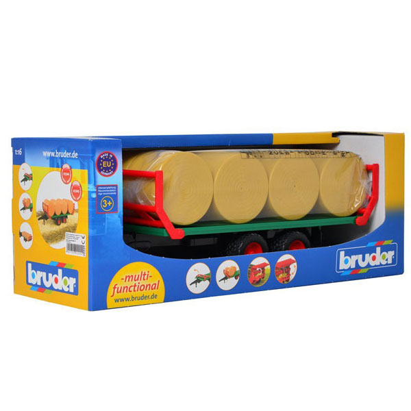 Prikolica sa 8 bala sena Bruder 022204 je funkcionalna i realistična prikolica za bale u razmeri 1:16 , savršen je dodatak za sve ljubitelje igračaka na temu poljoprivrede. Isporučuje se sa 8 okruglih bala, a opremljena je sklopivim držačima koji omogućavaju jednostavno premeštanje i skladištenje bala. Za utovar i transport, prikolica sa 8 bala Brudermože se koristiti sa svim traktorima koji imaju prednji utovarivač i priključak za viljuške, što omogućava da se prikolica kombinuje sa traktorima iz Bruder kolekcije za kompletnu za igru.Dodatnu vrednost možete dobiti povezivanjem prikolice sa 8 bala sena sa Bruder balirkama za okrugle ili četvrtaste bale (art. br. 02121, 02015, 02017) ili našom okruglom mašinom za bale (art. br. 02122), čime će vaša poljoprivredna scena biti još realističnija.Prikolica sa 8 bala sena Bruder je dizajnirana sa sklopivom potporanom nogom za stabilnost prilikom parkiranja, dok tereti mogu da se okreću i odvajaju, što dodaje dinamičnost igri. Šasija sa gaznim gumama sa dubokom šarom omogućava lako kretanje po različitim vrstama podloga.