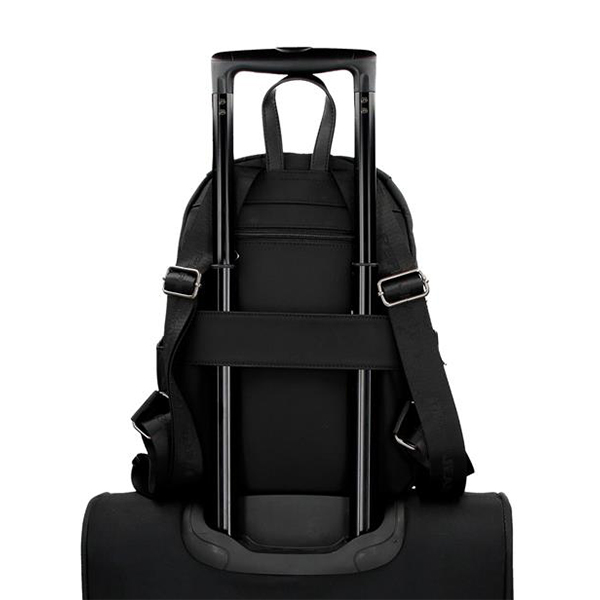 Ranac 35cm Tessa 7082131 Pepe Jeans 70.821.31 je praktičan i atraktivan ženski ranac, dimenzija 25x35x13cm. Ranac 35cm Tessa 7082131 Pepe Jeans 70.821.31 je klasične crne boje, pa se lako uklapa u različite odevne kombinacije. Jednostavnog je dizajna, sa jednim dekorativnim priveskom koji ujedno služi i kao privezak za ključeve. Unutrašnjost ranca čini jedan odeljak za stvari, sa tri unutrašnja džepa, bočne džepove, kao i džep sa prednje i zadnje strane, tako da nudi dovoljno prostora za sve potrebne sitnice za svakodnevne izlaske iz kuće. Prednji džep je je idealan za sitnice poput maramica, vlažnih maramica i sličnog koje su potrebne pri ruci. Zadnji džep je sa zatvaranjem rajsferšlusom. Na zadnjoj strani je takođe postavljena traka koja omogućava postavljanje ranca na teleskopsku ručku kofera.