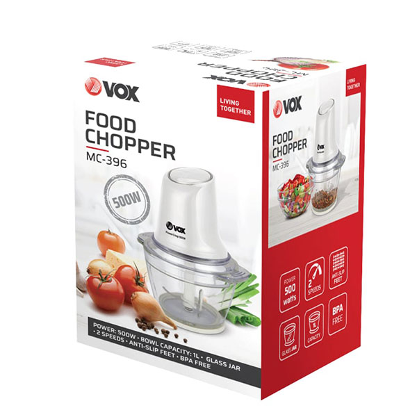 Šifra i naziv: Seckalica sa staklenom posudom500 W bela Vox MC396