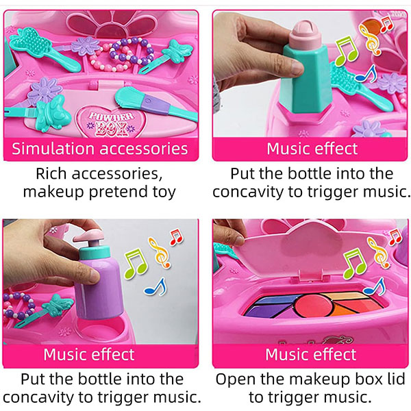 Opis - Sto za šminkanje sa stolicom,svetlom i zvukom 19 delova roze 020809