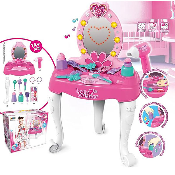 Šifra i naziv: Sto za šminkanje sa stolicom,svetlom i zvukom 19 delova roze 020809