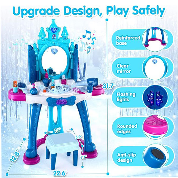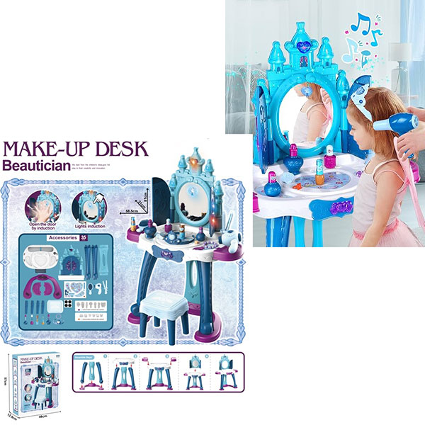 Šifra i naziv: Sto za šminkanje sa svetlom i stolicom 35 delova plavi Yunaking 406825